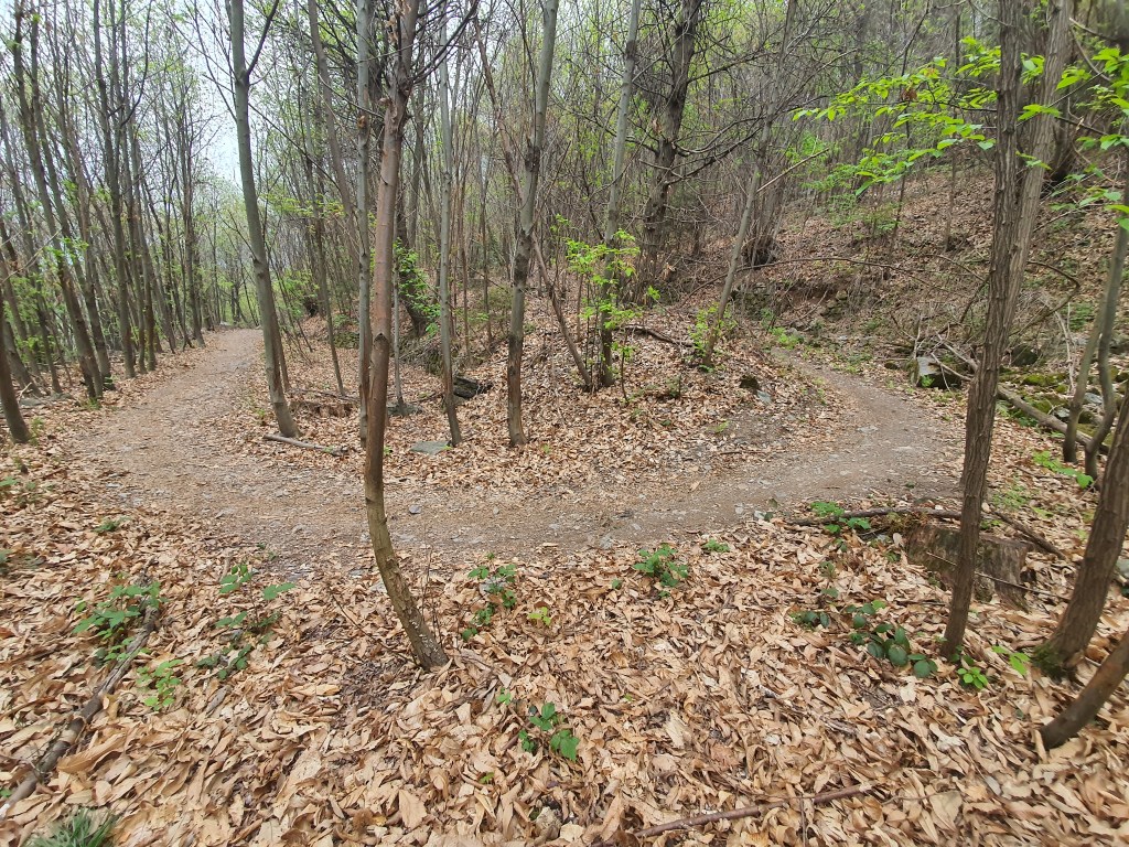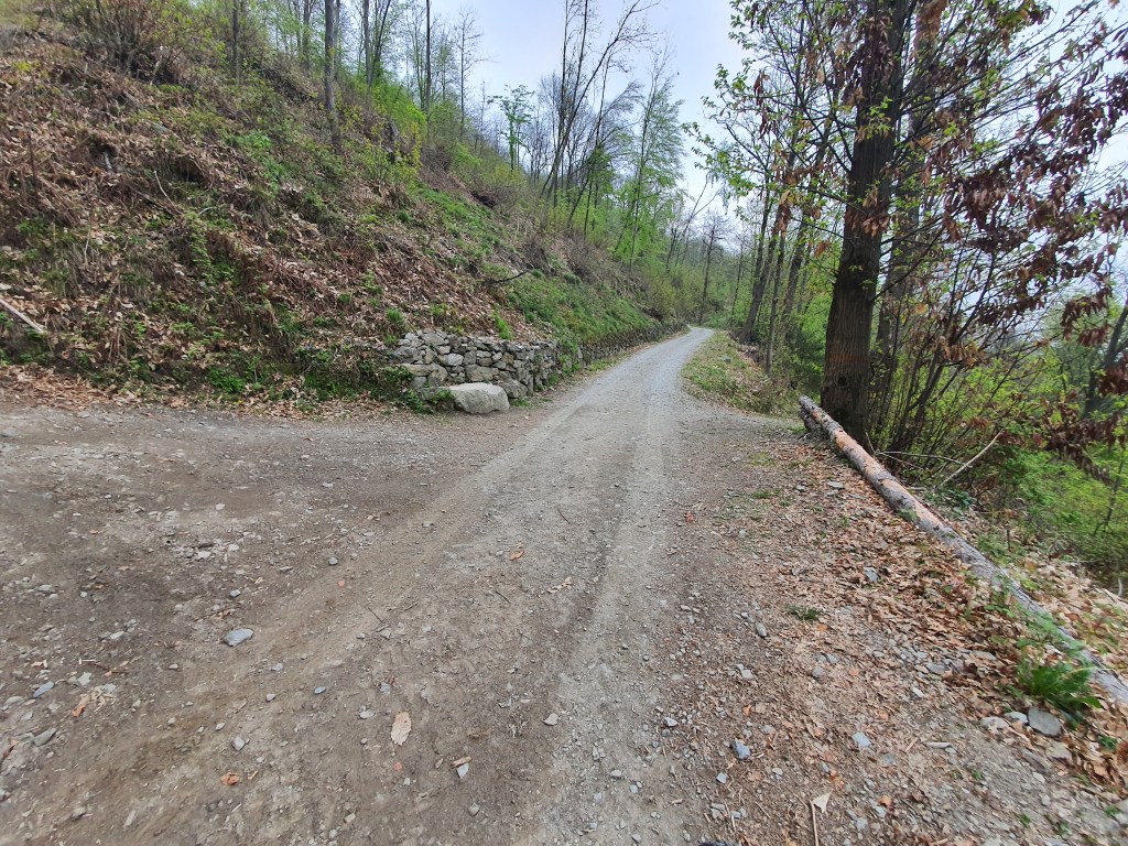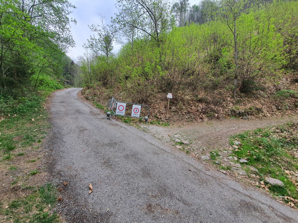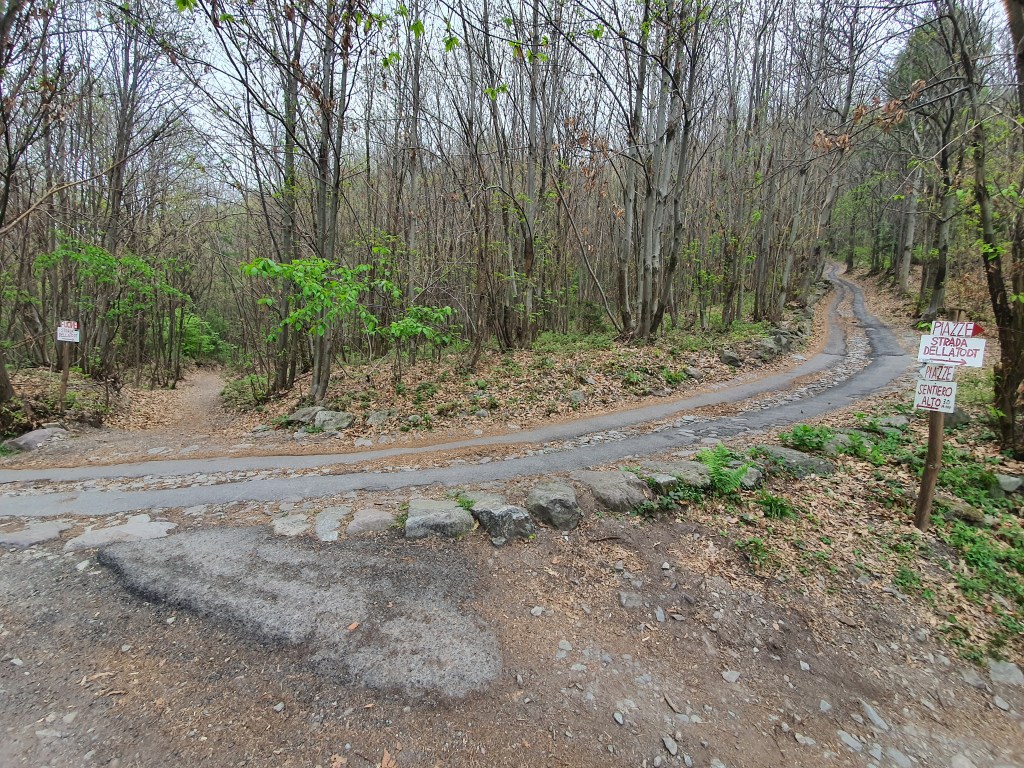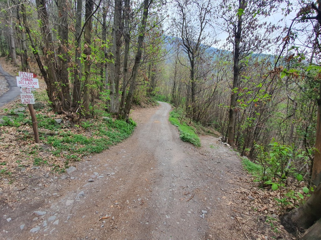 (•18) Percorriamo l’ultimo tratto in single track fino all’ennesimo ed ultimo attraversamento della strada (•19) . In questo punto , andando dritti saliremo fino a piazze , (mentre a destra una mulattiera che scende porterà fino a gianico (•20)