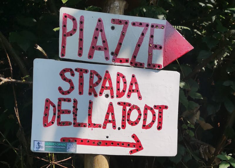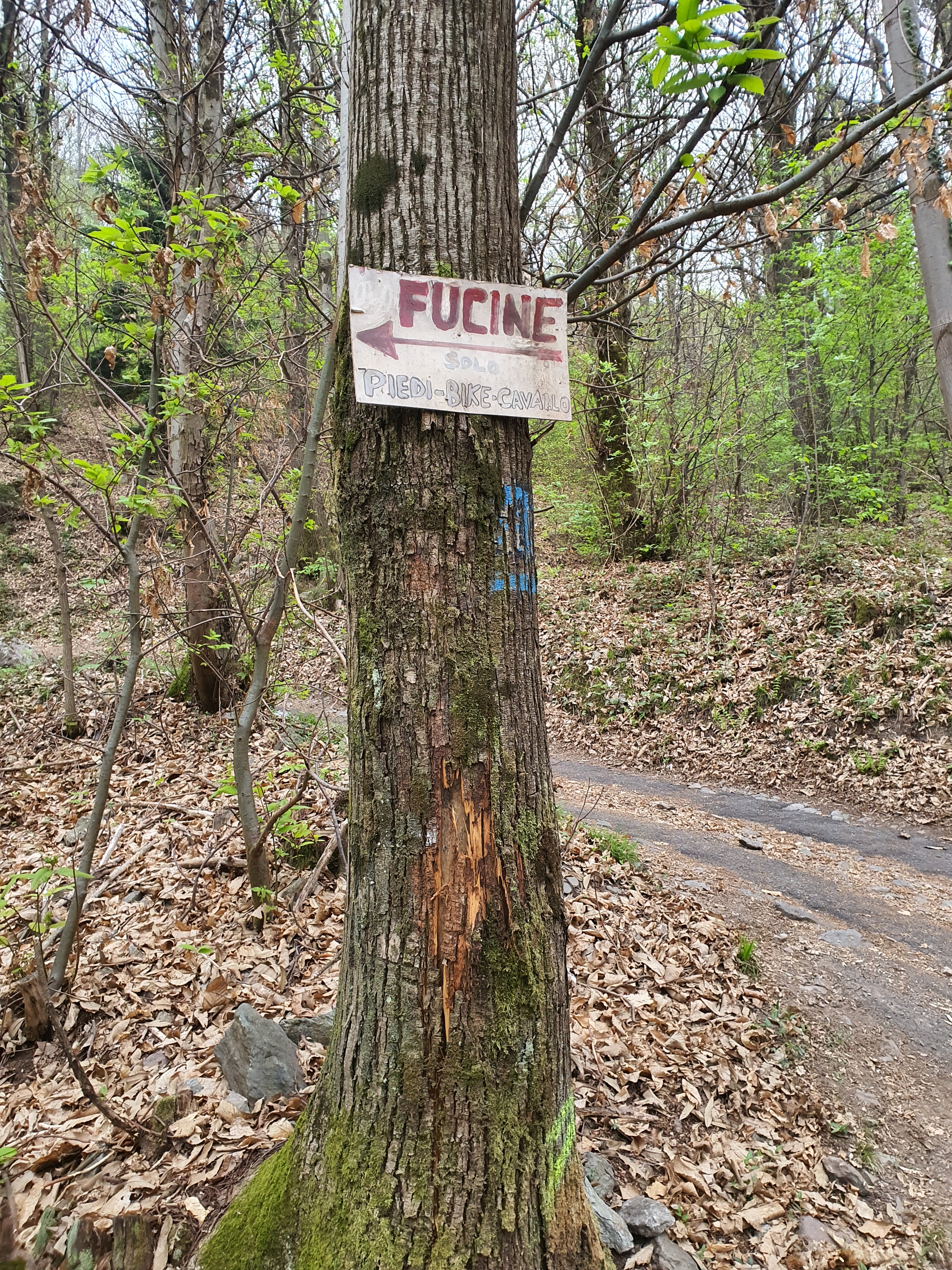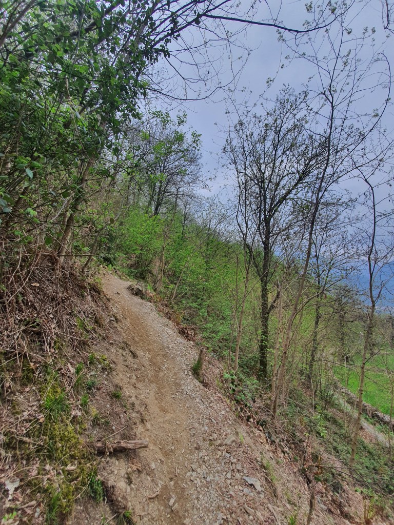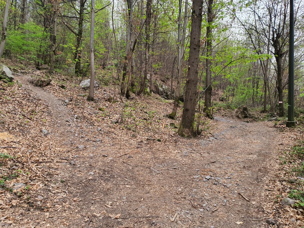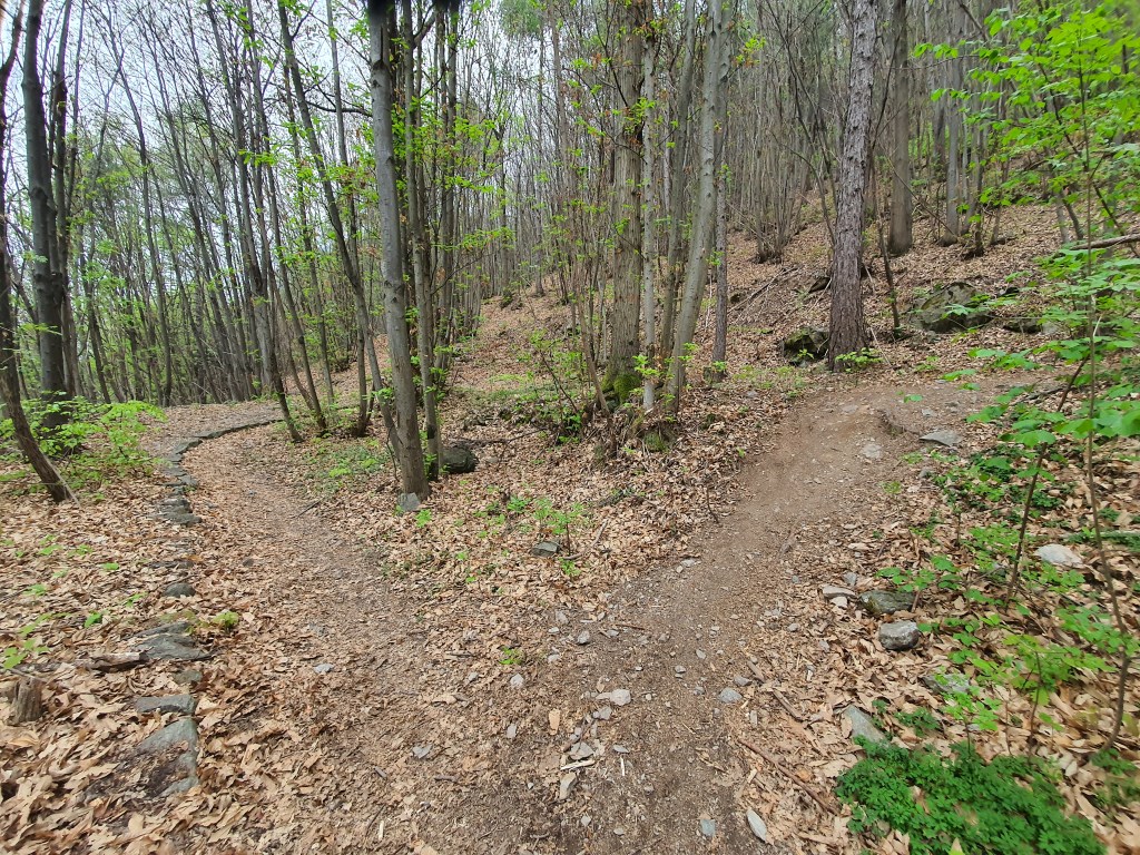 (•18) Percorriamo l’ultimo tratto in single track fino all’ennesimo ed ultimo attraversamento della strada (•19) . In questo punto , andando dritti saliremo fino a piazze , (mentre a destra una mulattiera che scende porterà fino a gianico (•20)