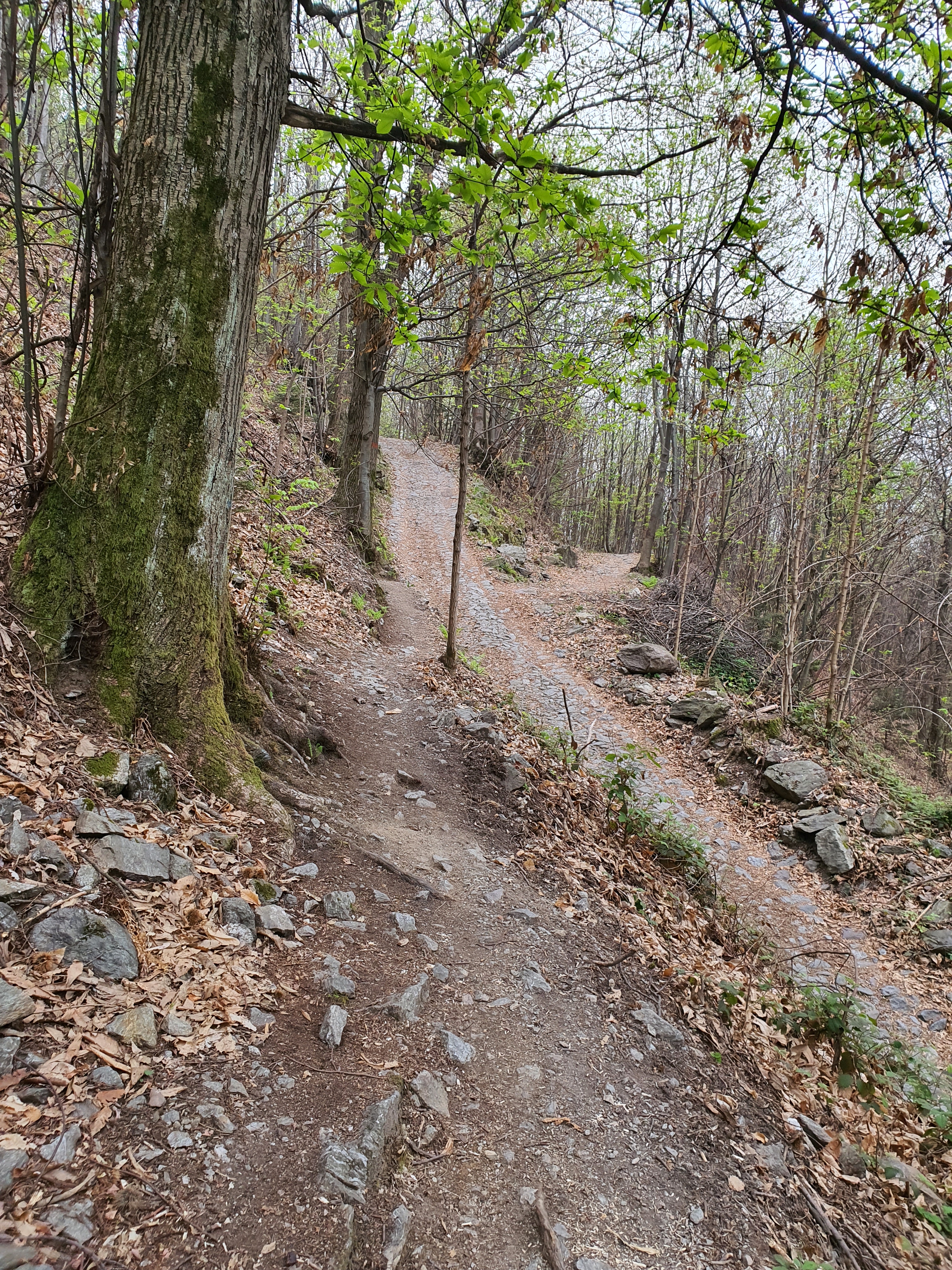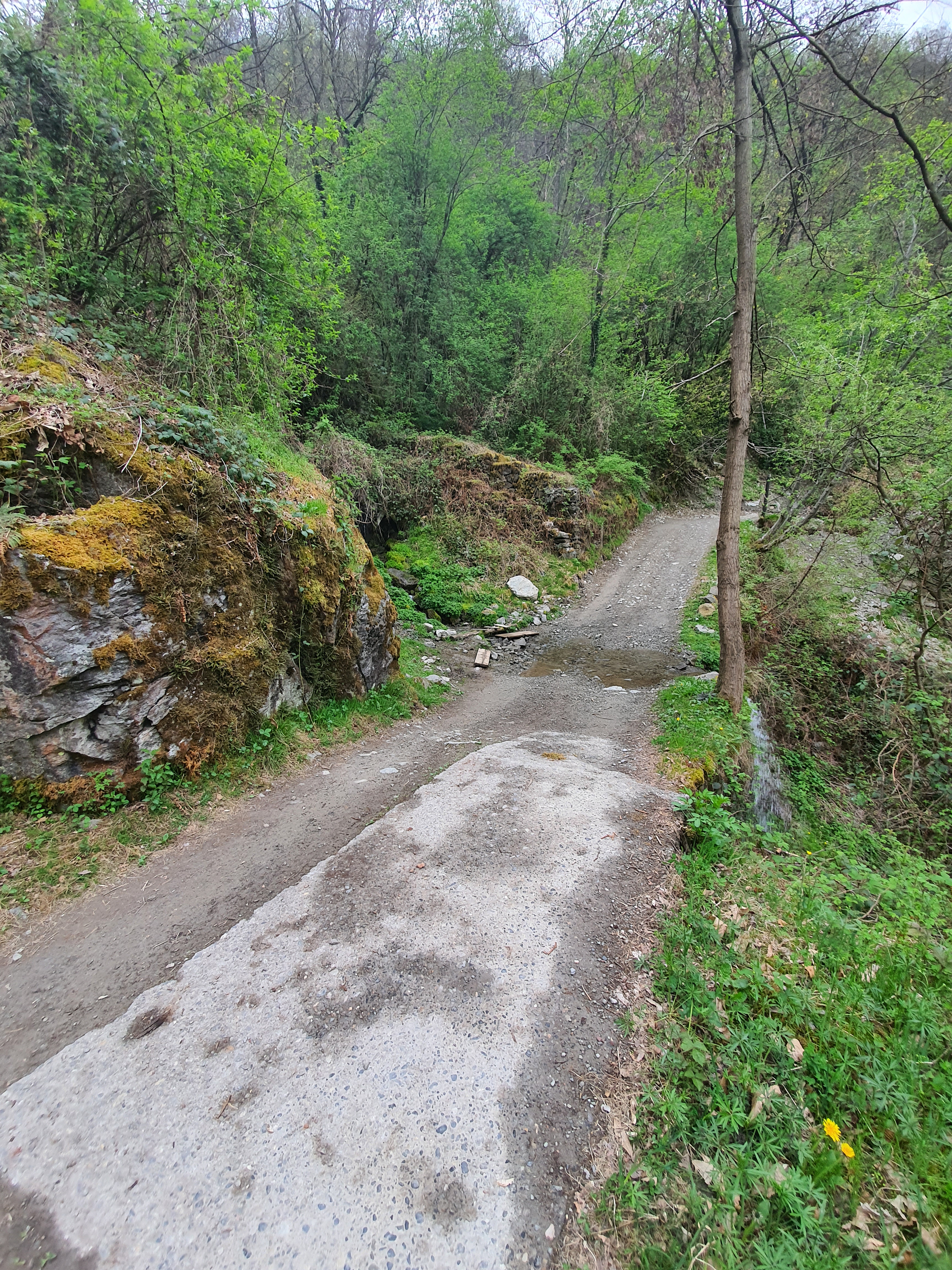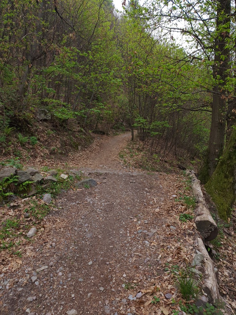 Dopo circa 100 metri , ci troveremo al 2° taglio della strada (•7) . Ma prima dovremo affrontare il punto più “pericoloso” di tutto il trail (•8) . Un piccolo passaggio tra una pianta e il muretto che delimita la strada sottostante . Dovremo solamente stare attenti a non perdere l’equilibrio verso la strada . (Sarà circa 1 metro di altezza , quindi nulla di troppo rischioso) , attraversiamo e continuiamo…(in questo punto c’è anche una piccola deviazione del sentiero verso DESTRA , che scende e arriva fino a gianico , molto carino d percorrere) (•9) .
