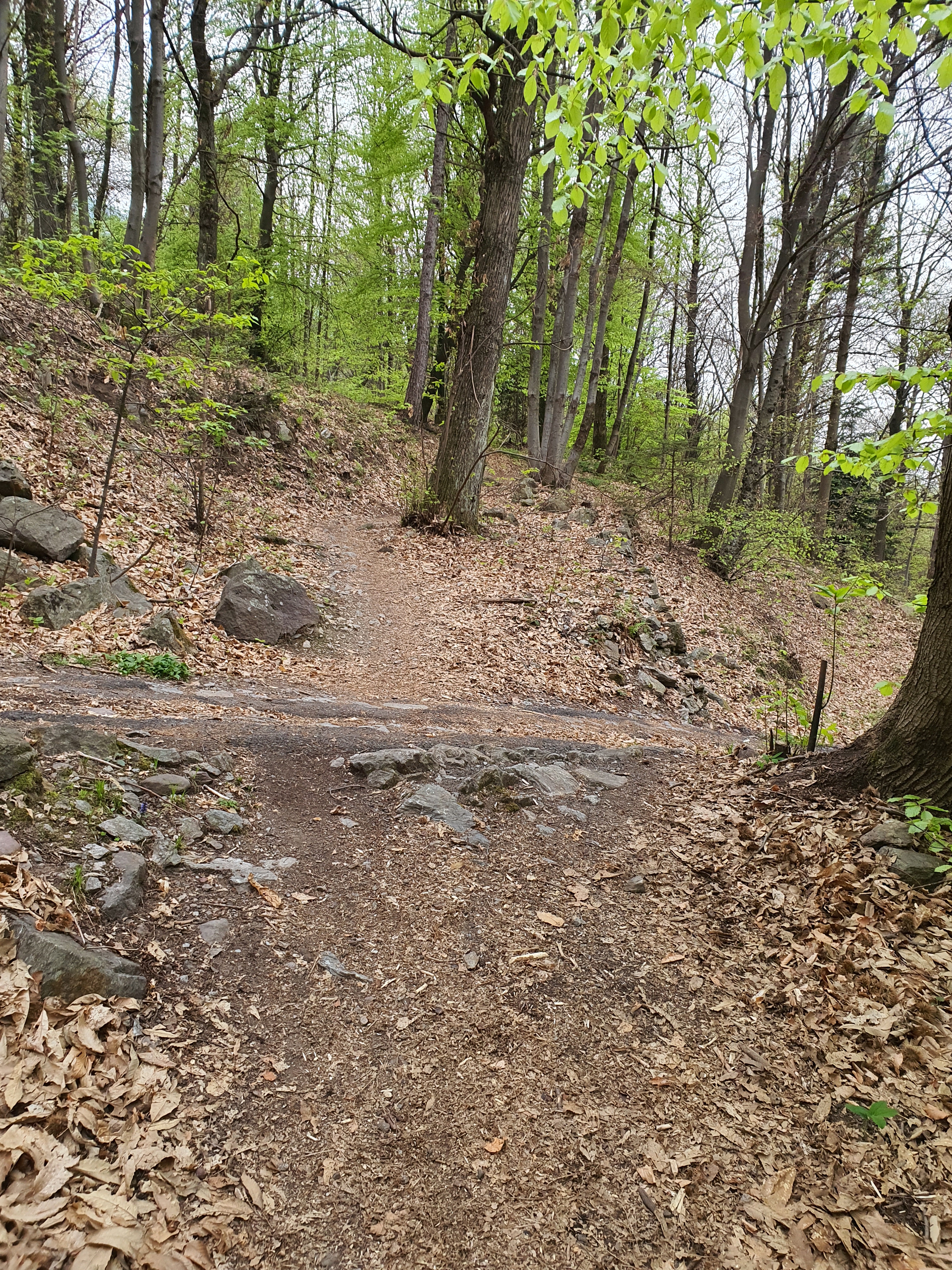 Il sentiero continua in maniera molto dolce immerso nel bosco . Ad un certo punto ci sarà un piccolo dosso di folgiame trasversale (•5) . Non preoccuparti lo potrai superare passando per la traccia formatasi a forza di passarci sopra .