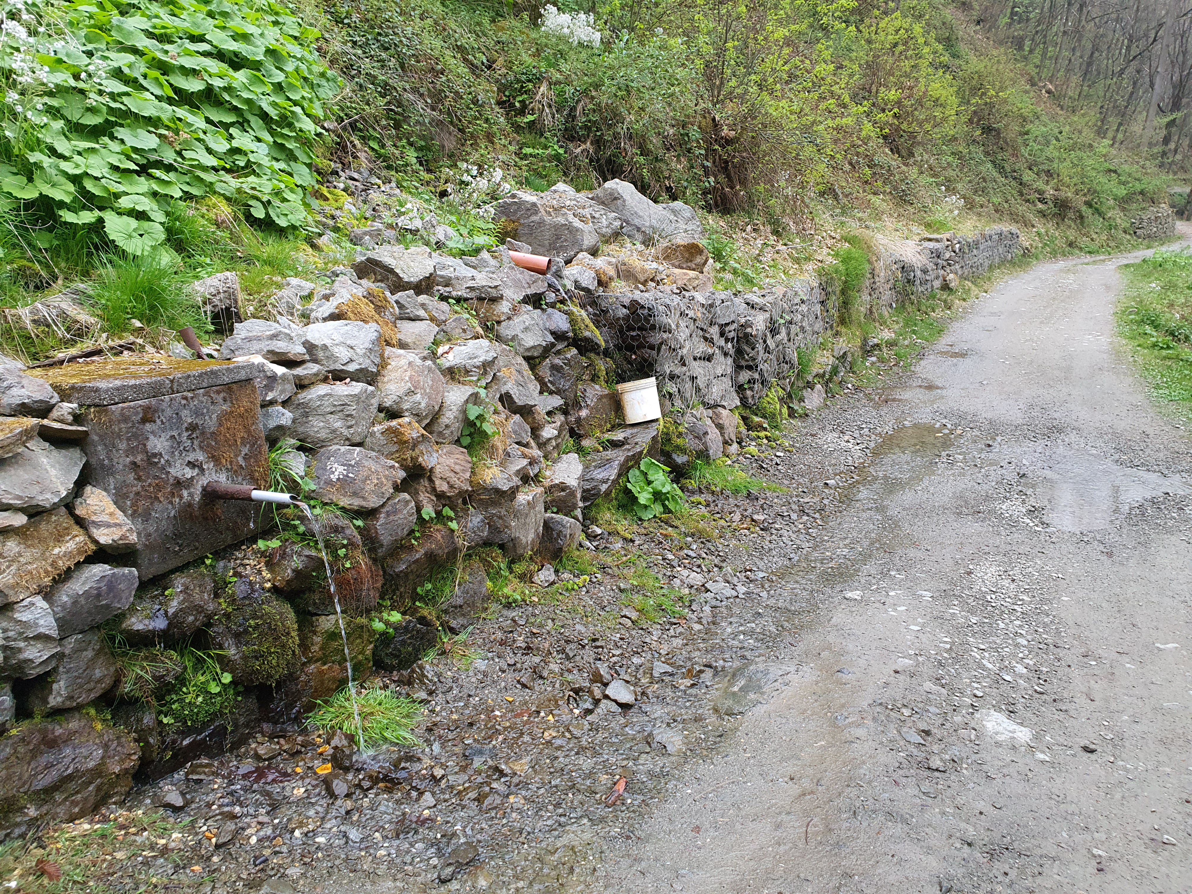 Qui continueremo il sentiero , che diventa più una mulattiera (perdendo il suo fascino) . (•21) Circa 300 metri avanti attraverseremo 2 piccole vallette (•22) , qui troveremo una piccola fontana naturale , con un tubo dove potremo riempire la borraccia (•23) .