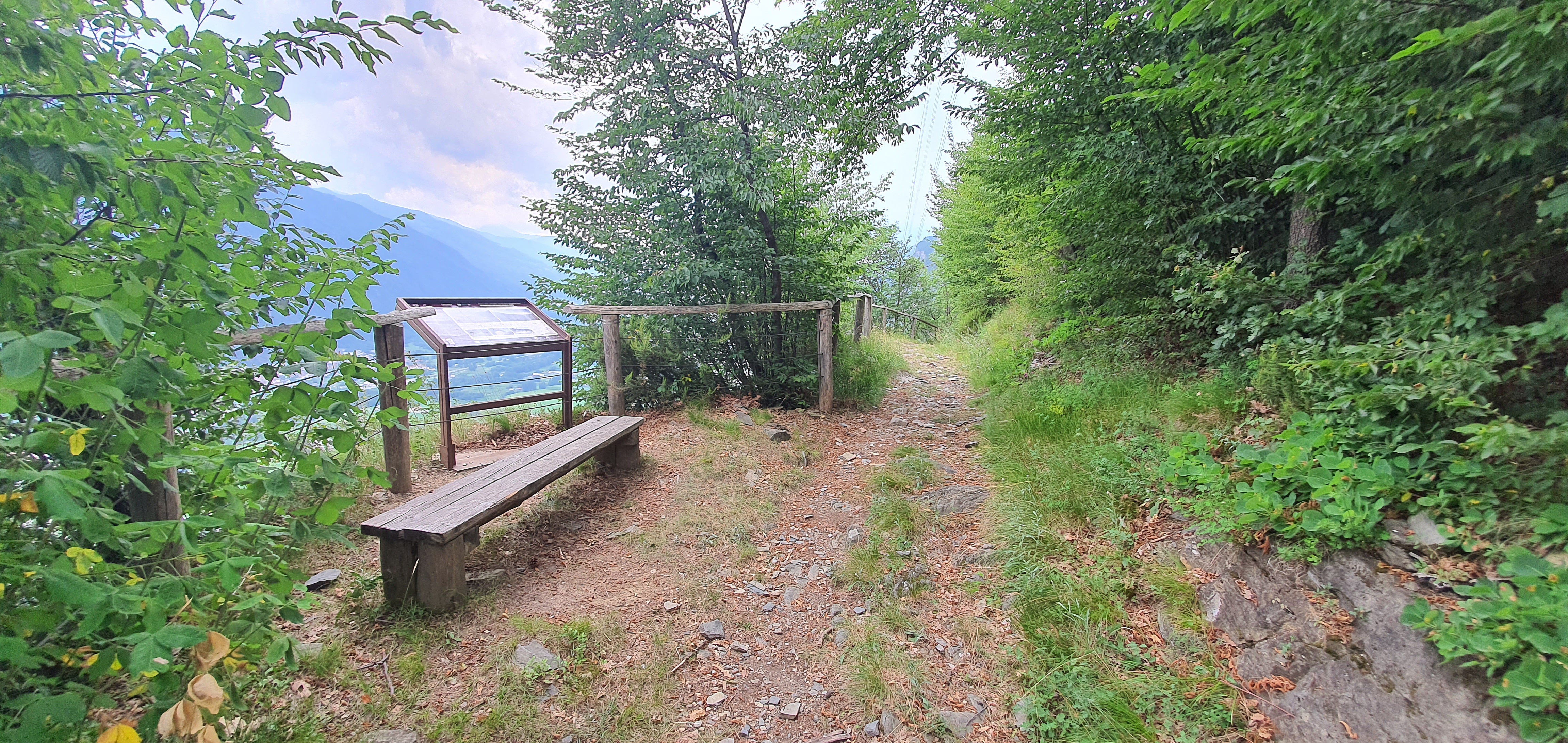 Continuamo a scendere , il trail si trasformerà piano piano in un sentiero vero e propio (•7) , molto scorrevole e divertente . Sulla sinistra incontreremo una panchina (•8) con un panorama a sbalzo su tutta la bassa vallecamonica ed il lago d’iseo , un’ottimo posto dove scattare una foto ricordo ❗ (l’immagine di copertina del sentiero è stata scattata propio li) .