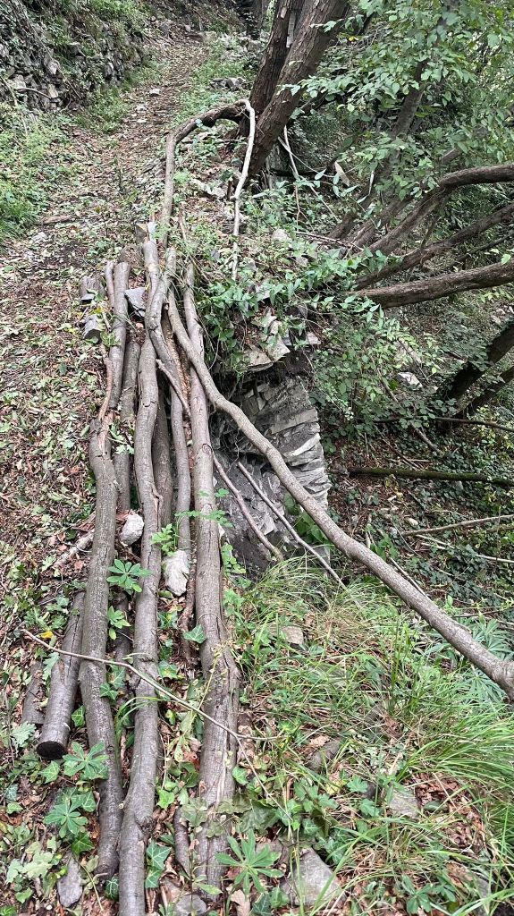 Ora arriverà la parte piu FLOW di tutto il percorso (•14) , una tratto molto scorrevole affiancato ad un vecchio muro di sassi sulla sua destra (•15) . In molti punti alla sinistra del trail ci sarà un’altro muretto con 3/4 metri di altezza , fate quindi molta attenzione , non è pericoloso in quanto bello largo , ma basta comunque poco per farsi male . Passeremo anche un piccolo punto dove il muretto era ceduto ed è stato creato un rinforzo / ponticello per rimediare a ridurre il rischio di cadute .