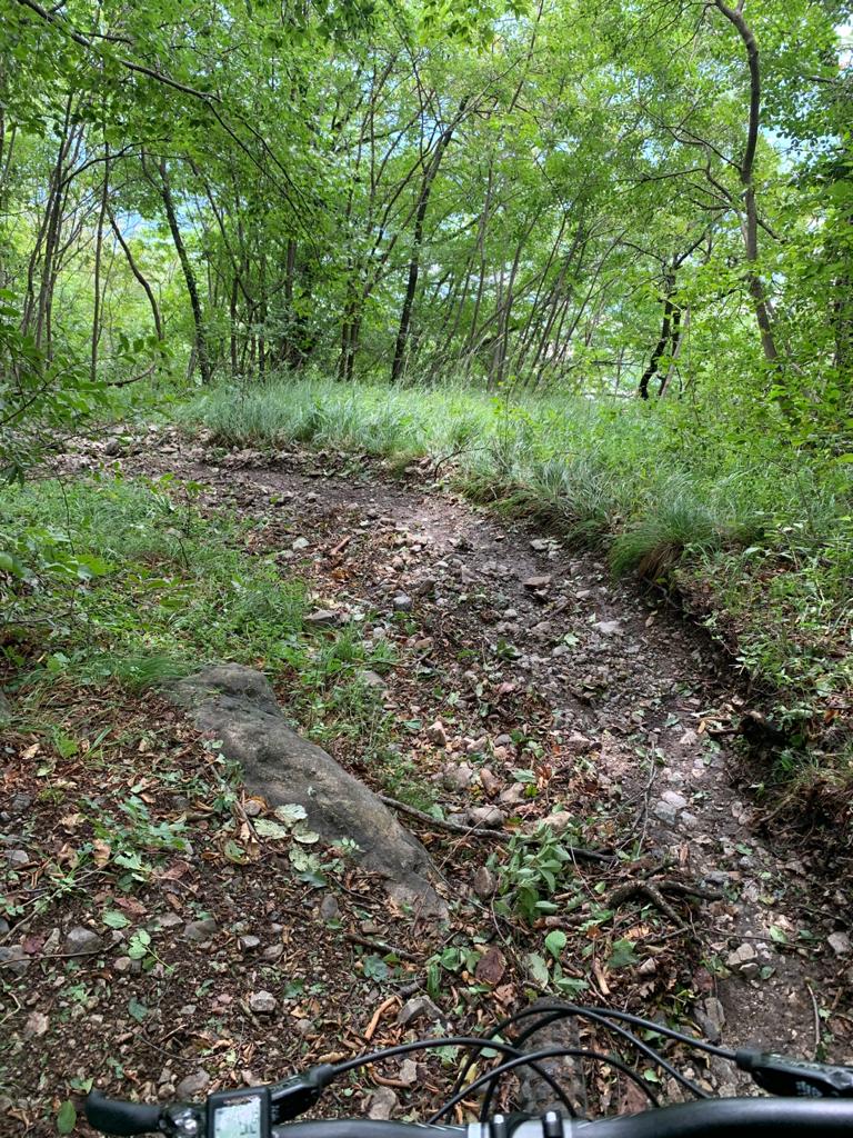il trail comincerà propio a fianco della baracca (•8) , scendendo come un singletrack . Attenzione ! In quanto quasi subito ci troveremo di fronte ad un fondo molto smosso e tecnico (•9) .