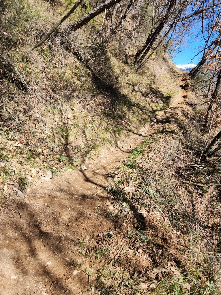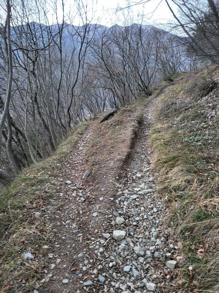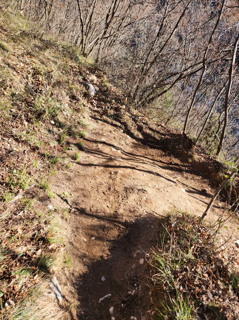 Questo tratto sarà piuttosto corto ma molto divertente (cercate di stare sempre a monte e non a valle e in quanto il trail è leggermente esposto) . Alla fine di questa breve discesa incontreremo una salita (●5) , leggermente ripida e che in alcuni tratti risulterà un po tecnica , ma sopratutto anche qui lievemente esposta , in quanto la zona è stata vittima di qualche piccola frana (●6) qualche tempo fa (alcune dovremo attraversarle). Noi consigliamo di spingerla , evitando così rischi inutili .