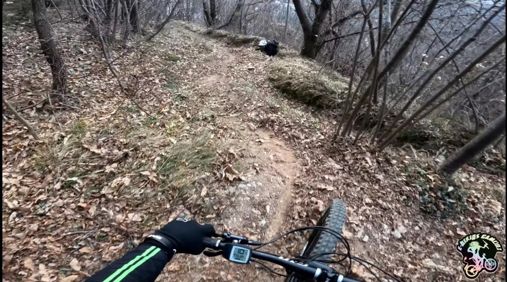 Dopo un’ultimo tratto dritto , incontreremo una serie di curvette molto scorrevoli (●15) , e subito dopo 3 molto strette e ripide (●16) .Le troviamo Molto divertenti ed istruttive . Noi ci siamo presi una decina di minuti per riprovarci più volte .Questa è forse la parte più divertente del trail . (In questo punto abbiamo testato la ghost e-riot trail , trovate il video su youtube (●17)) .