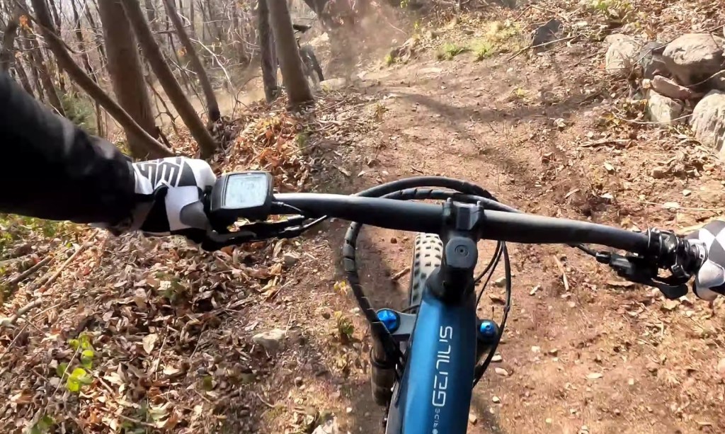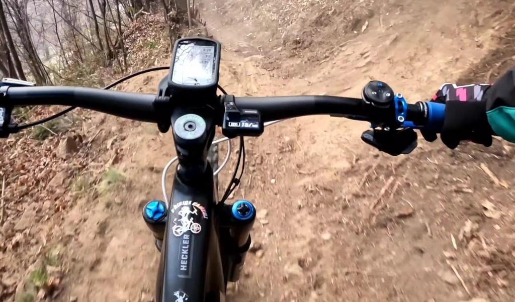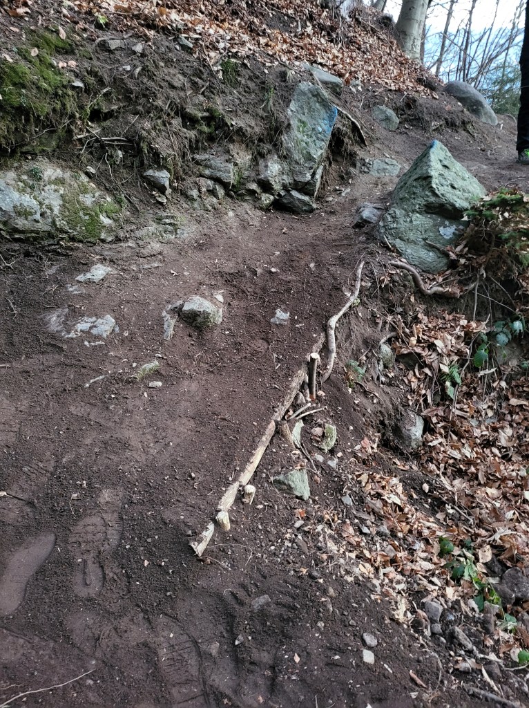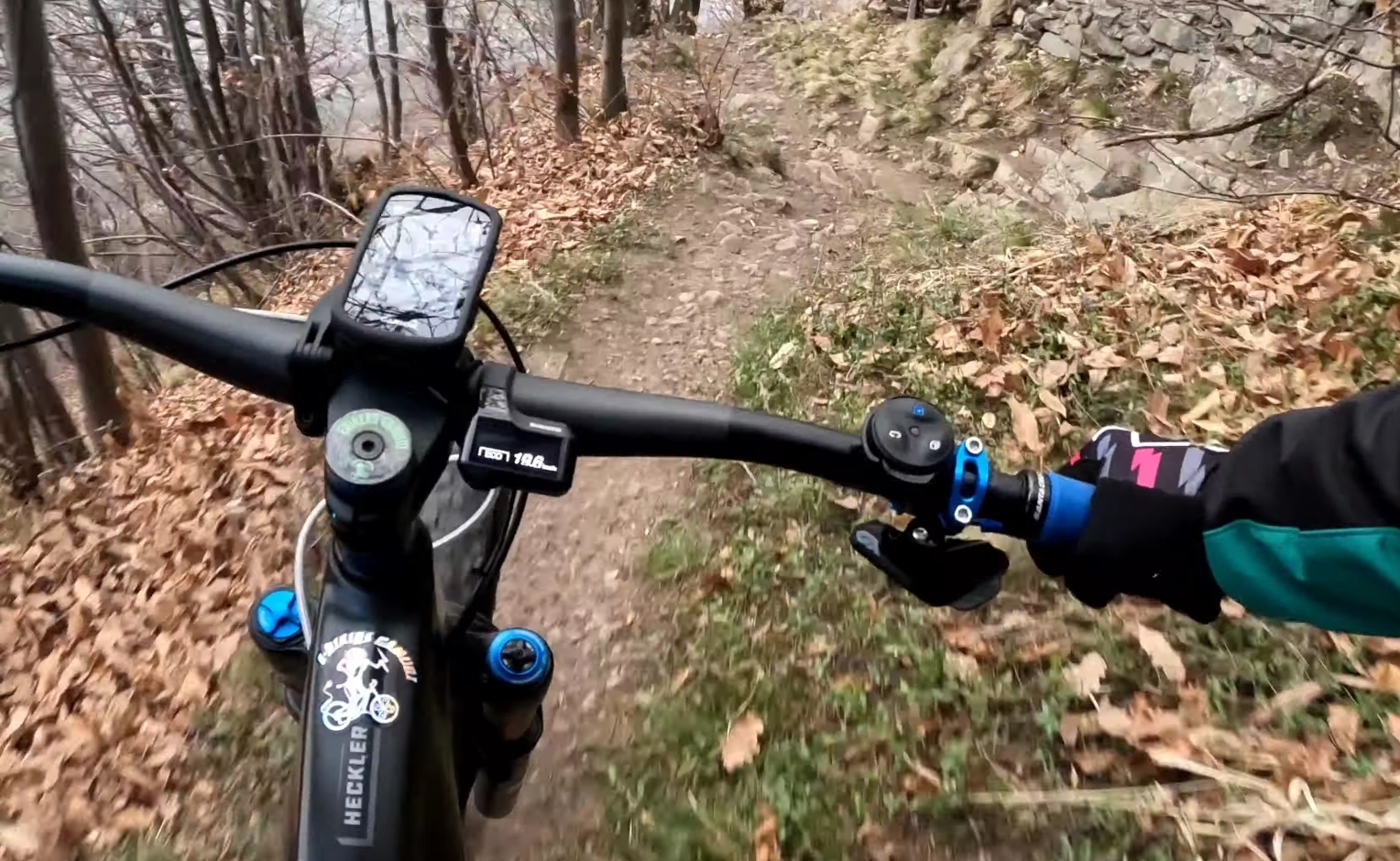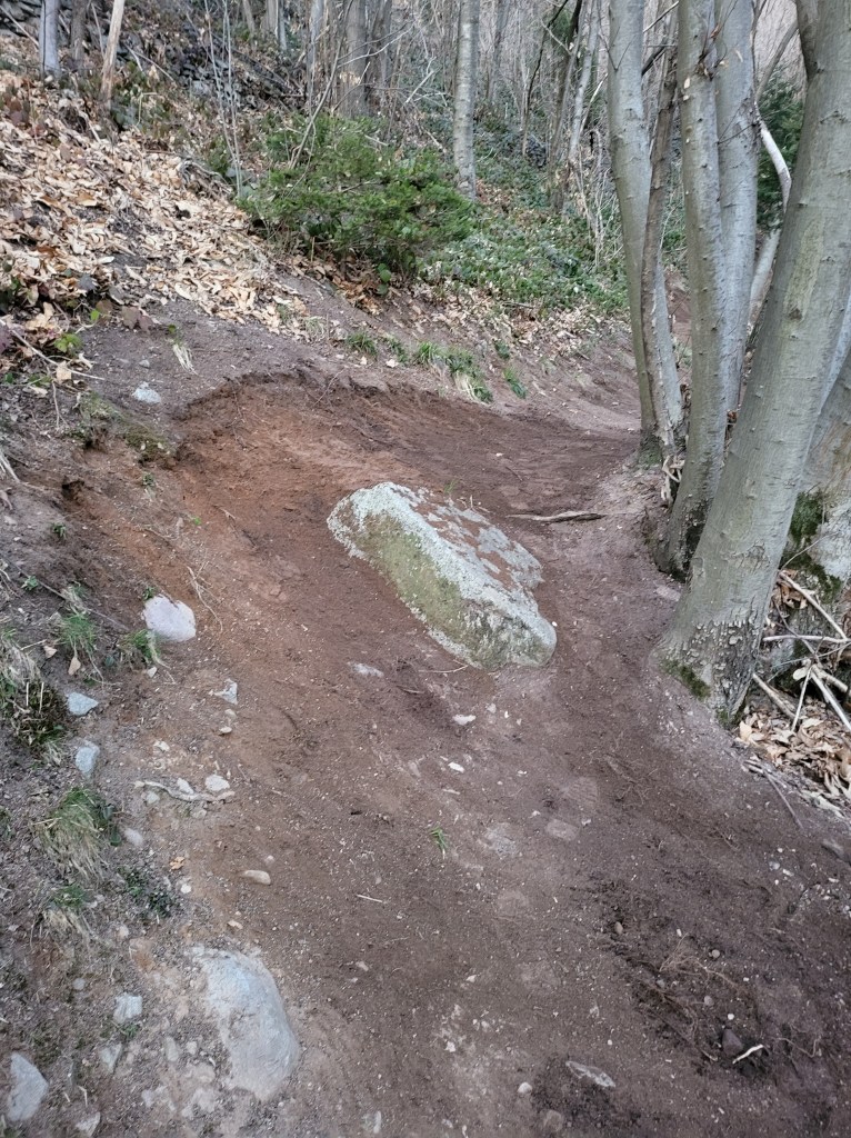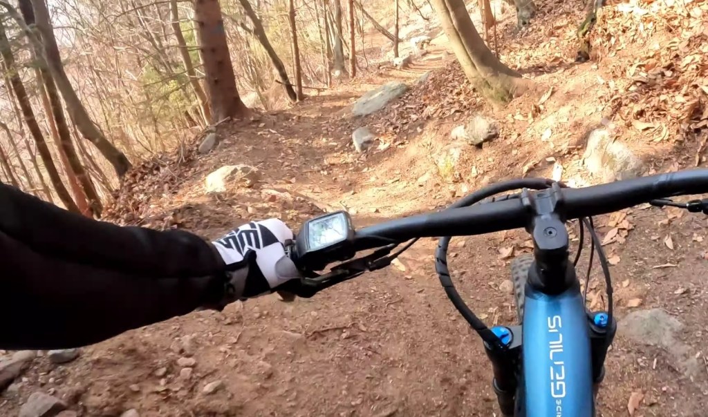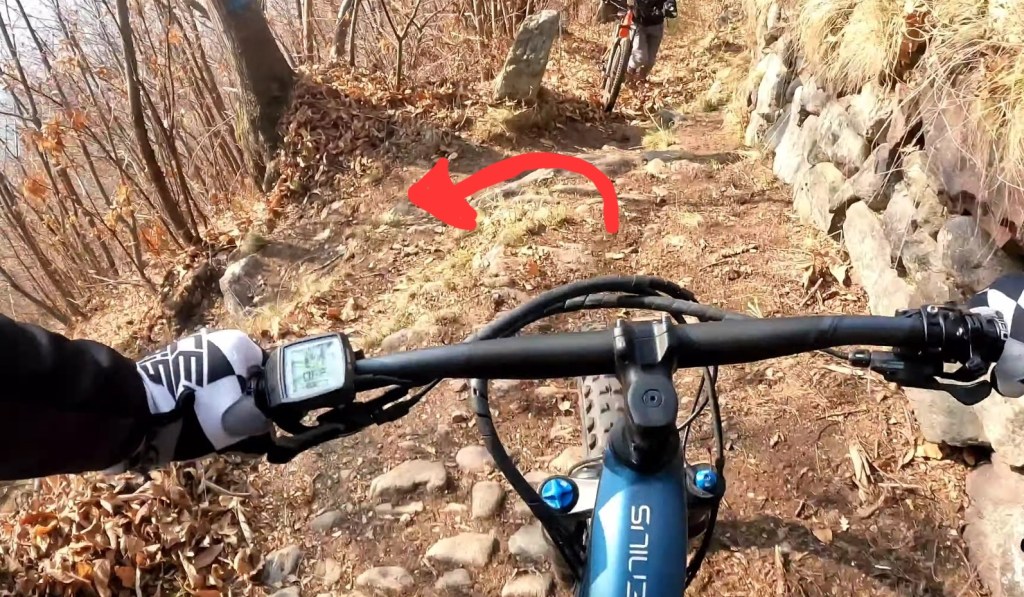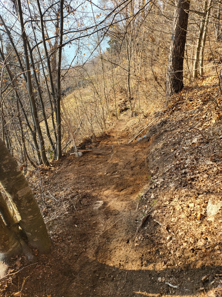 Superato anche questo drop , dovremo passare da una curva . Anche qui interamente ricreata in quando non esisteva più (•15) . Terminata la curva comincerà la parte più scorrevole del sentiero (•16) . Tenetevi pronti . Perché da qui fino alla fine ci saranno molte curve leggere con appoggi naturali , sassi da utilizzare come drop e piccoli tratti leggermente tecnici. (Alleghiamo qualche foto)