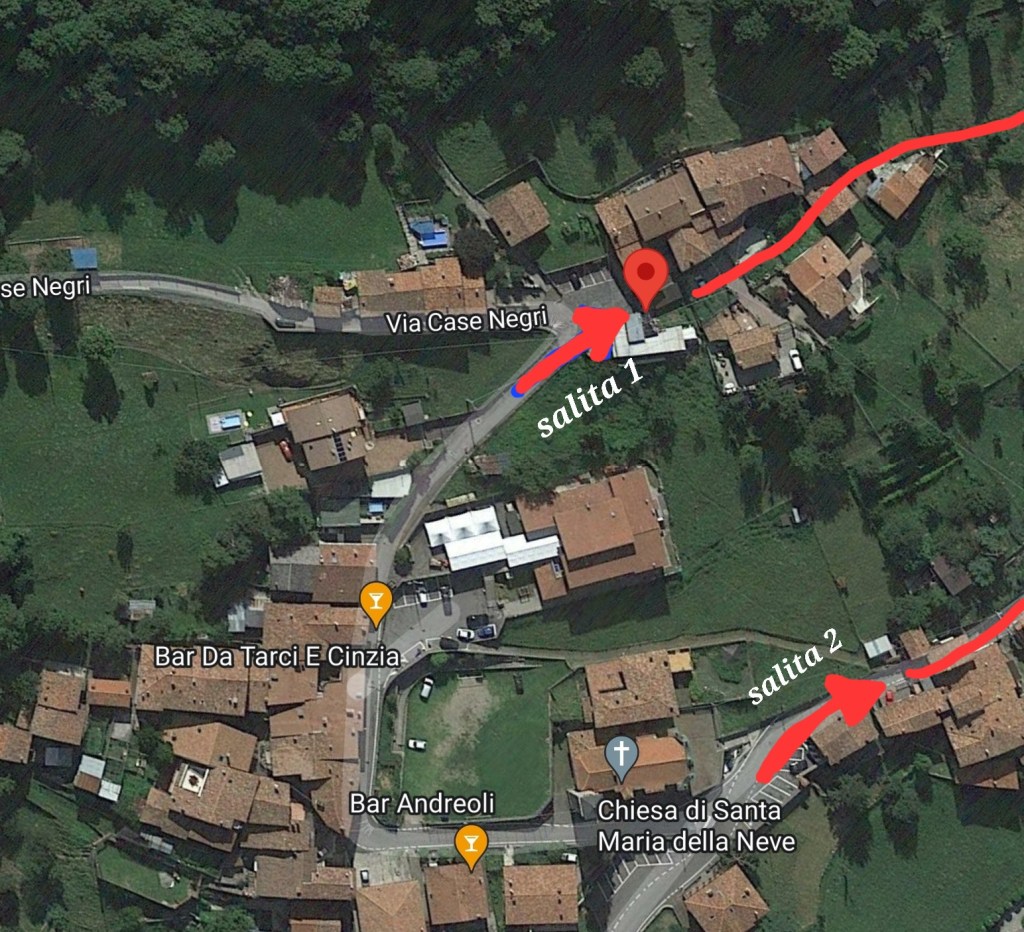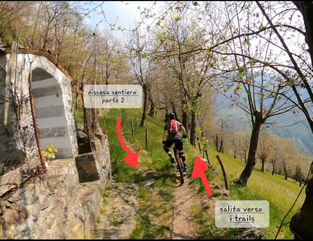 📍Divideremo il percorso in 2 tratti , parte 1 e parte 2 , che saranno collegati da un tratto di strada principale .Per raggiungere l’inizio dei trails prenderemo come punto di riferimento piazze , più precisamente il bar di tarci e cinzia (•1), di fianco al campo . Le strade inizalmente saranno 2 , una Salendo lungo la strada Principale , e l’altra salendo sopra il campo (•2) , lungo un singletrack che passerà di fianco alla fine del sentiero stesso (parte 2) (•3) e che sbucherà anch’esso sulla strada principale . Continuando la salita , passerete anche di fianco all’imbocco del trail 2 (•4) . ma l’unico bivio da prendere , sarà quello oltre le antenne , che incontrerete superati 3/4 tornanti . ad un certo punto davanti al bivio (•5) , dovrete andare a destra , verso la mulattiera che porterà in direzione prato di secondino . Qui , quasi subito , passerete di fianco ad una casa , ed ecco che circa 2/300 metri dopo , vi ritroverete all’inizio del trail 1 (•6).