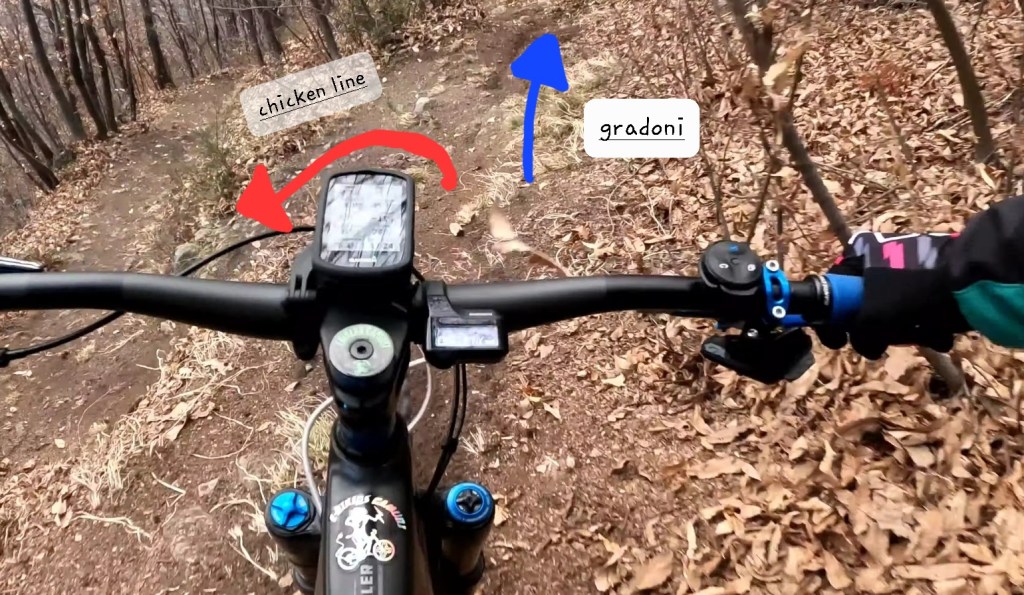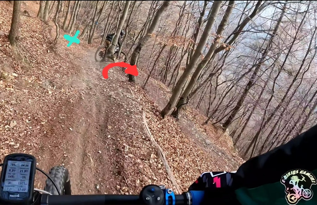Subito dopo quest curva , avremo un piccolo rettilineo (•33) seguito dall’ultimo bivio (•34) , dove potremo decidere se andare a SInistra per fare la classica CHICKEN LINE (con la curva abbastanza stretta , ma con la linea Molto più semplice . Mentre se andremo a destra dopo una decina di metri ci troveremo di fronte a dei gradoni molto tecnici (•35) , dove si incontreranno le due LINEE . Eccovi alla fine del percorso amici (•36)….⚡️💪❗️🏁