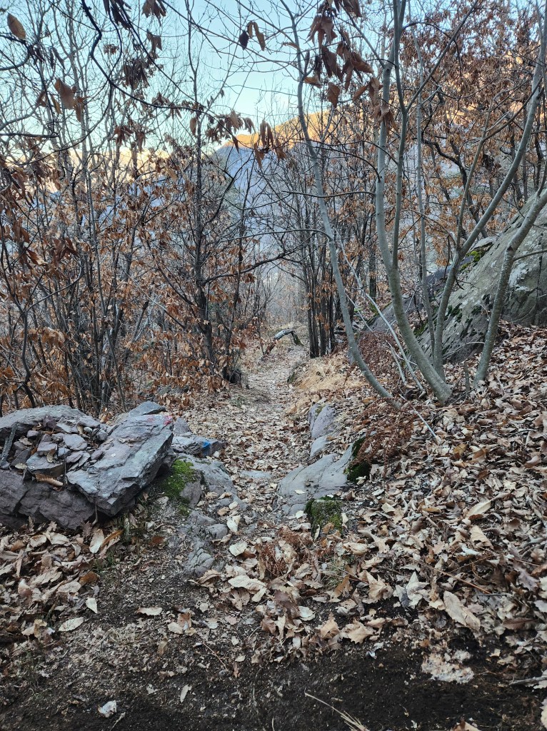 Continuiamo la mulattiera , ed alla prima curva imbocchiamo il sentiero a destra
