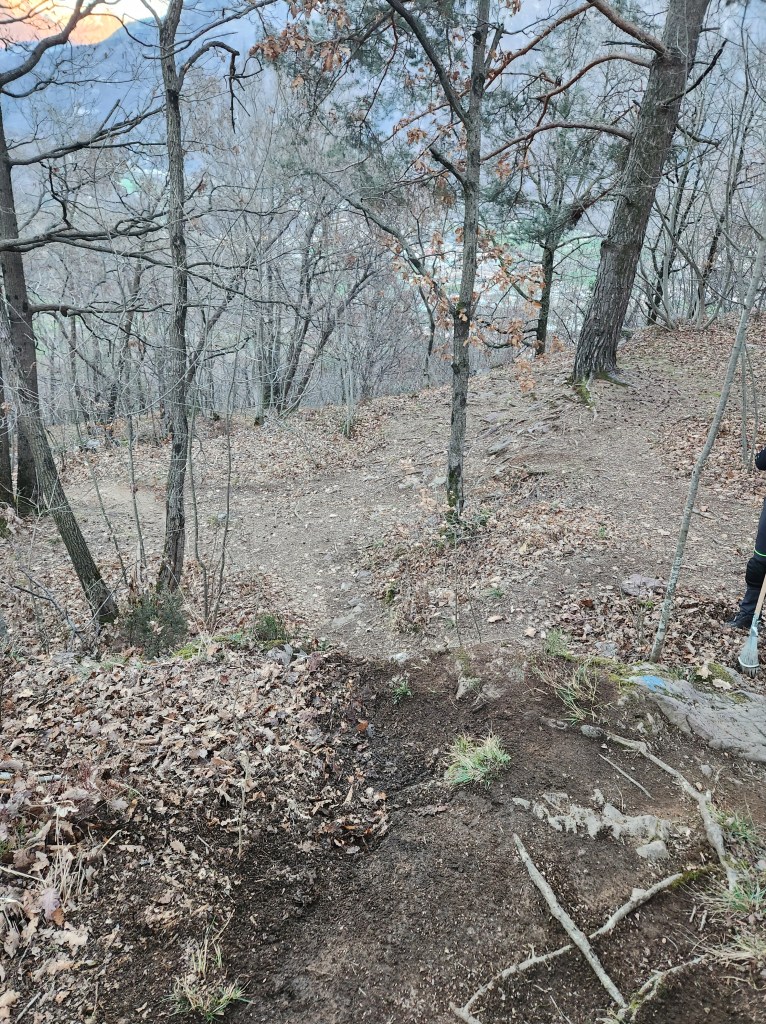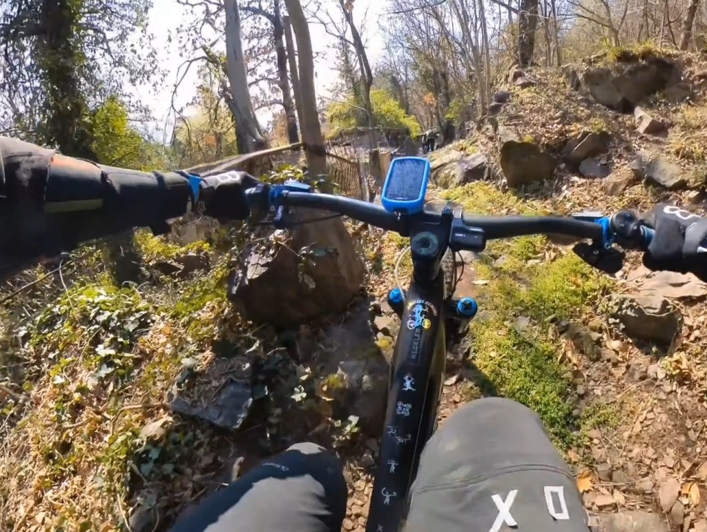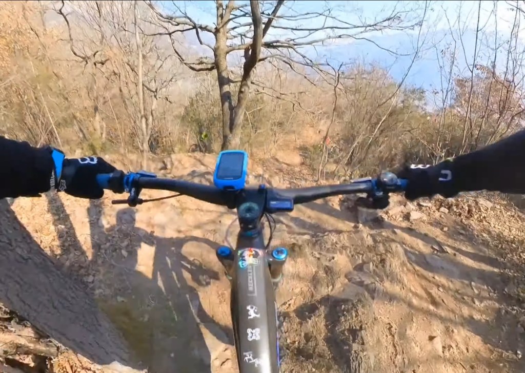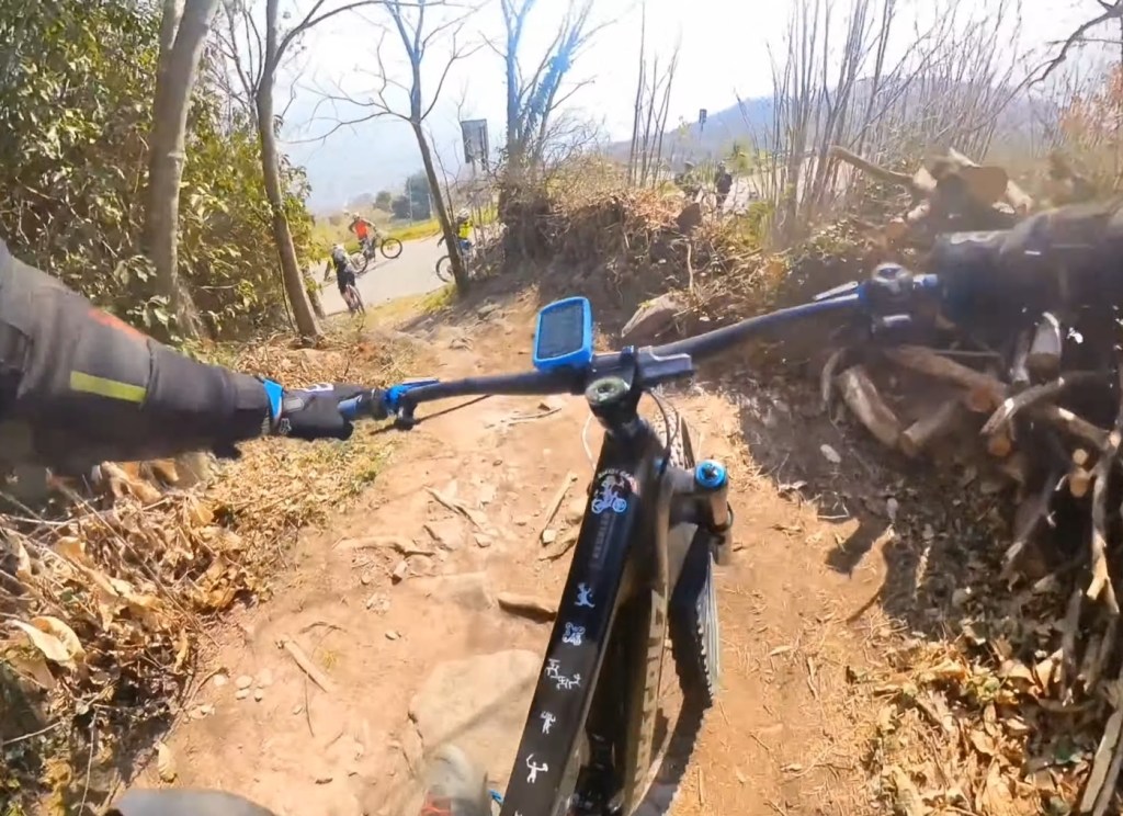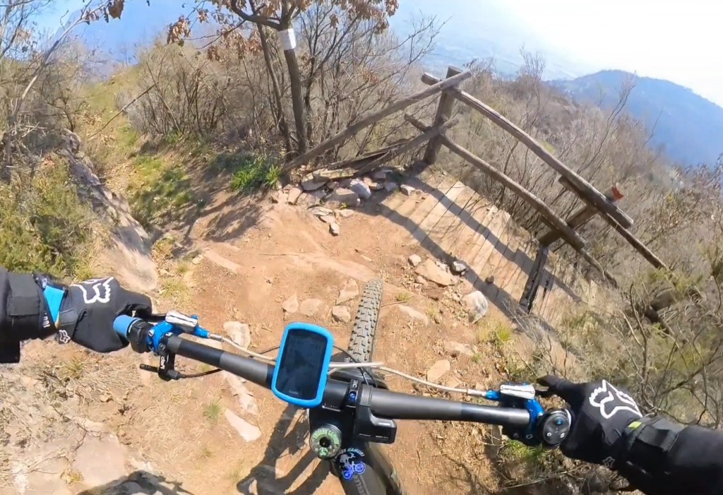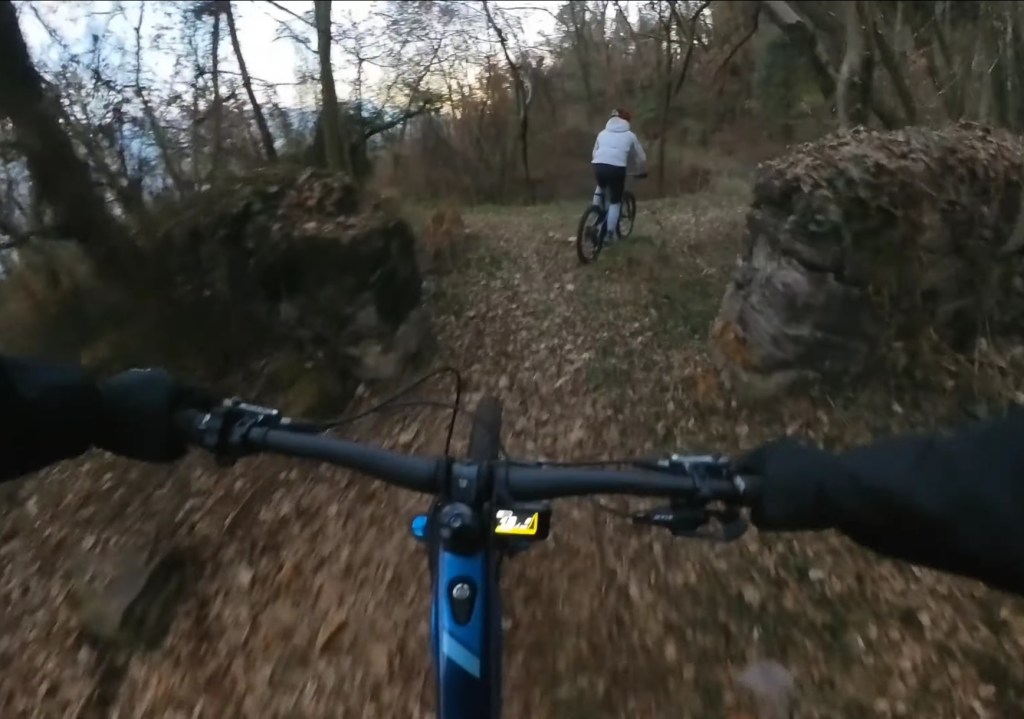 Qui seguiamo la traccia a terra . Subito a destra scenderemo subito nel sentiero classico di capo di lago . Ma dovremo calare le bici . Mentre a sinistra , scavalcheremo qualche ramo Ed un muretto (a breve puliremo il passaggio) , e ci congiungieremo con un sentiero , che più sotto , si ricollegherà anch’esso al sentiero classico di capo di lago , ma che sarà molto più divertente !