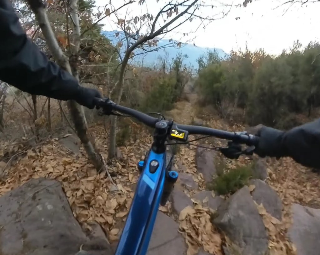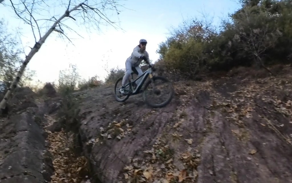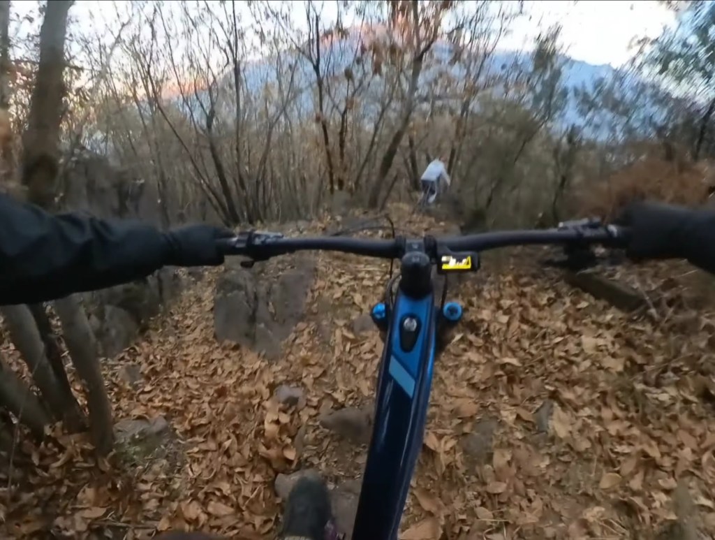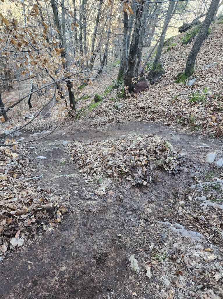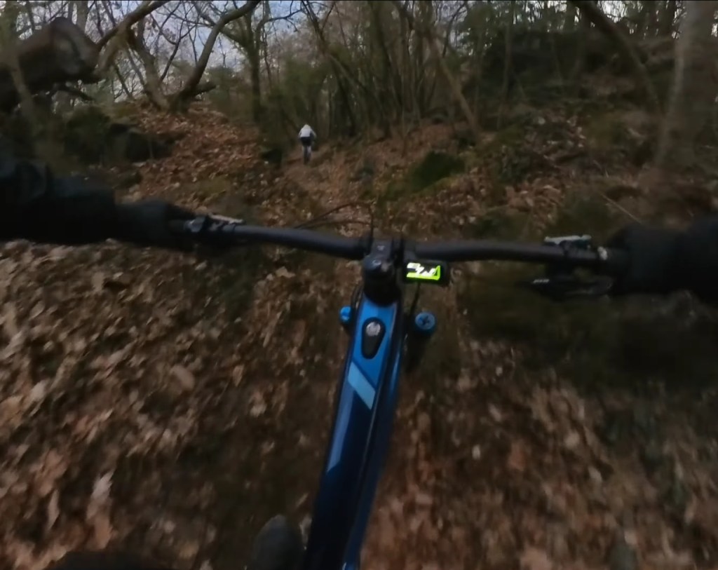 Giunti in fondo al prato , sulla destra comincerà la traccia , che potrete scorgere tra le foglie , essendo piuttosto marcata . Dopo il primo tratto a spinta , per aggirare un masso , avrete via libera per dare sfogo al divertimento !!!