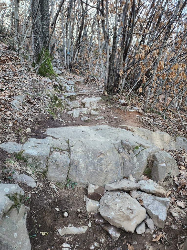 Subito dopo Questo tratto pianeggiante incontreremo breve passaggio di rocce , e passeremo sotto ad una pianta caduta