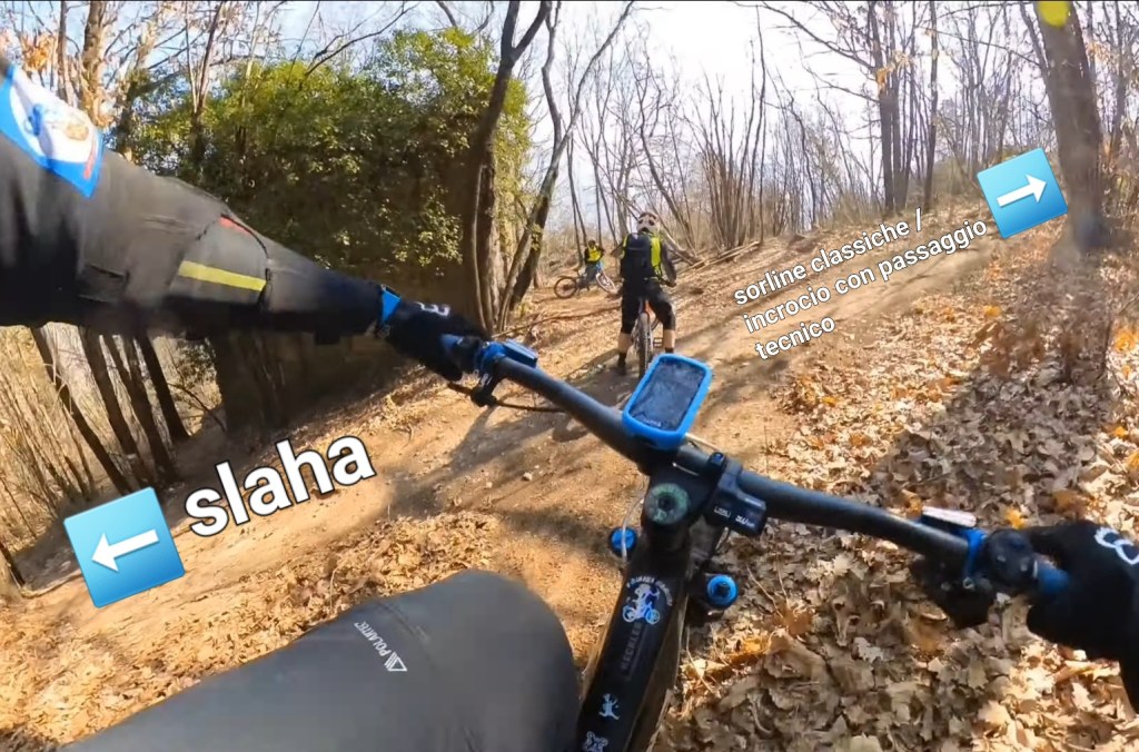 La Slaha è una delle varianti finali del sentiero delle sorline , nello specifico , la più tecnica e difficile di tutte , e quella che ci porterà fino all’inizio della strada di capo di lago , attraverso un’ultimo tratto su mulattiera , o si collegherà verso la fine del sentiero classico . (Noi descriveremo quest’ultima) . Per imboccare il sentiero , verso la metà delle sorline classiche , gireremo a sinistra , sia che avremo preso la variante chicken line , sia la Principale sul passaggio tecnico delle rocce . Passeremo di fronte alla casa diroccata e continueremo fino in fondo , dove incontreremo un’altro bivio . A Questo bivio ANDREMO A DESTRA , mentre a sinistra , che ad una prima occhiata può sembrare super divertente , non sarà la via migliore , in quanto 100 metri sotto , si dividerà , di nuovo , a sinistra verso la via mala a gorzone (impercorribile) , e a destra sempre verso la slaha (ma anch’esso impercorribile) . La via principale sarà quindi a destra del primo bivio , lungo un percorso toruoso e divertente .La caratteristica Principale di questo trail è quella di non mollare mai nulla , e di essere costantemente un sentiero caratterizzato da rocce Fisse , curve strette e tecnice , (molto trialistiche) , e dalla “slaha” , che da appunto il nome al trail . La slaha non è nient’altro che una grande roccia tendenzialmente piatta , che dovremo attraversare per forza di cose , ma che date le sue caratteristiche porose , non ci darà grossi problemi di grip . L’ultima parte sarà suddivisa su un tratto di mulattiera , dove ad un certo punto , se continueremo su di essa , arriveremo in fondo , mentre se alla prima curva , andremo a destra , imboccheremo un’ultimo sentiero . Al bivio Andremo a sinistra , e verso la fine attraverseremo un boschetto di ulivi molto caratteristico , prima di collegarsi verso l’ultimo tratto del sentiero classico di capo di lago .