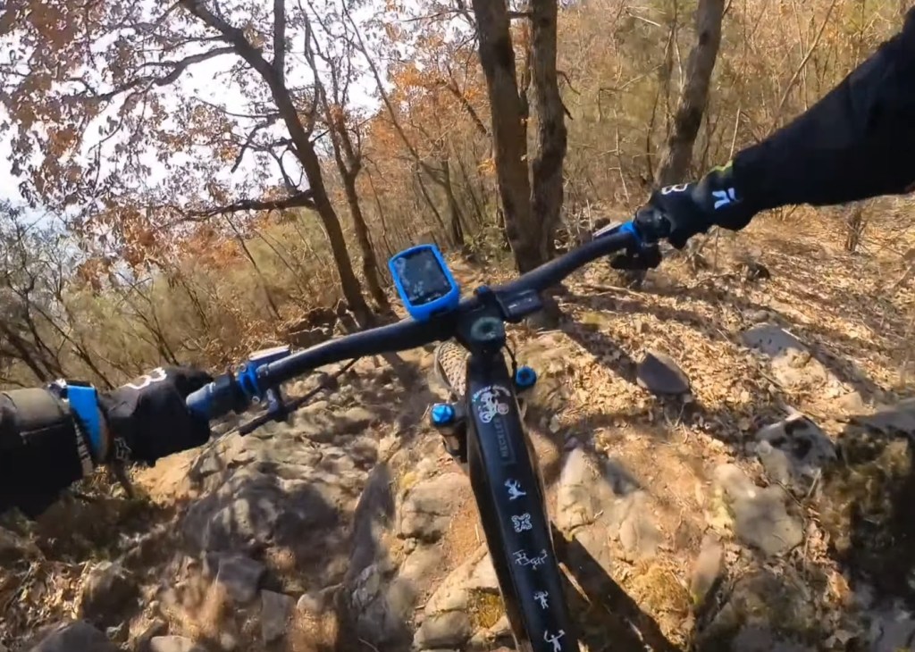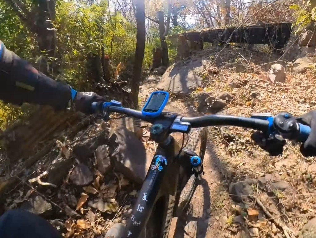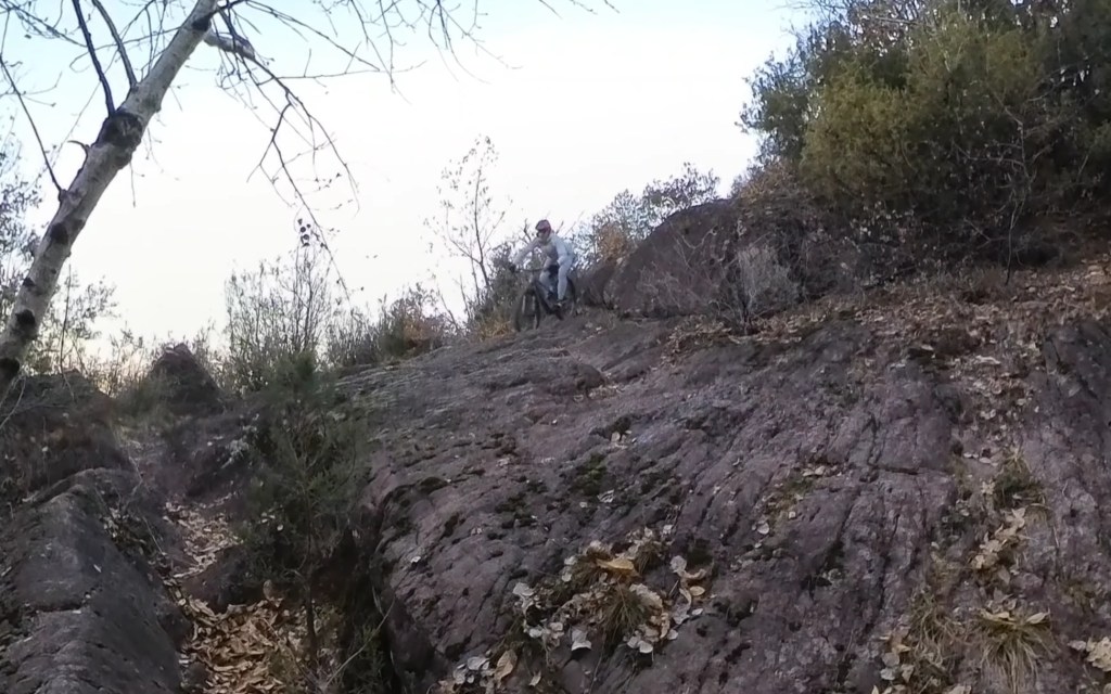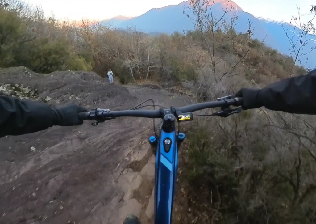 In questo punto potrete scegliere la via . A sinistra la “chicken line” più semplice , e a destra la via più tecnica con il passaggio più impegnativo di tutto il trail (•2)