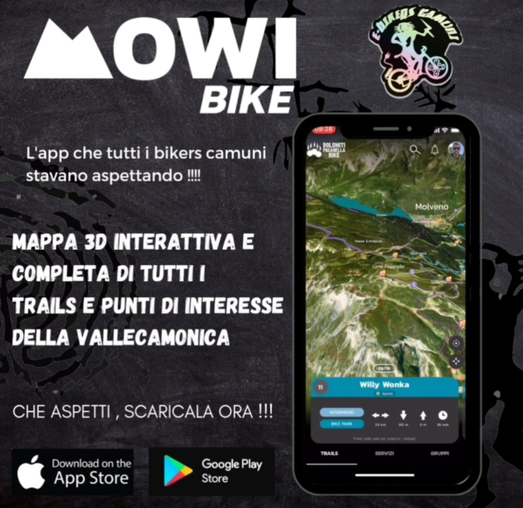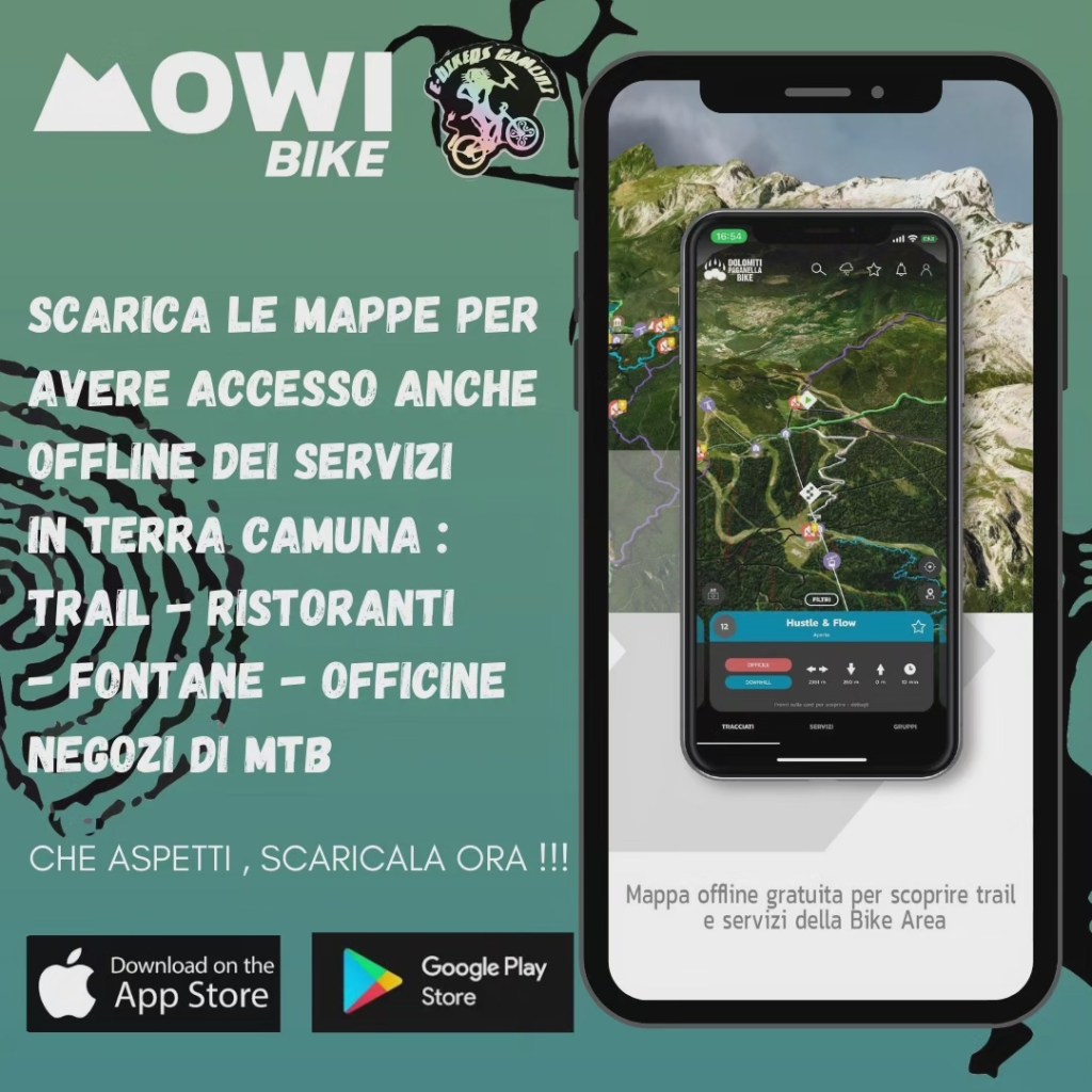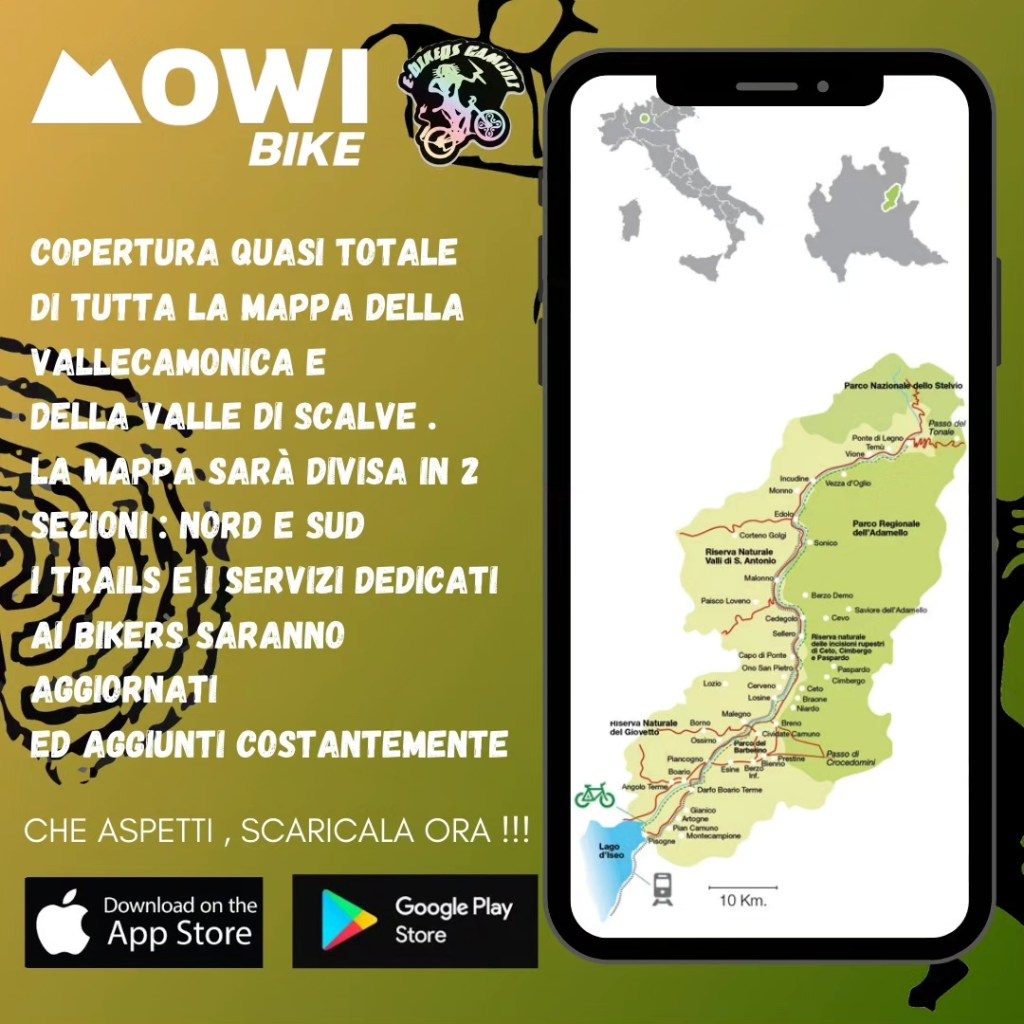 ●siamo lieti di annunciarvi questa nuova collaborazione !!! In accordo con mowi bike , nell’app troverete la sezione della vallecamonica divisa in NORD e SUD . all’interno dell’app , la mappa sarà completamente in 3D , e potrete trovare tutti i trail della valle (costantemente aggiornati) , tutte le informazioni utili relative al trail , tra cui : dislivello , tipologià , difficoltà , stato del trail (aperto/chiuso , e anche voi potrete segnalarlo) , dislivello , ecc… inoltre in mappa verranno indicati tutti i punti acqua , ovvero le fontane ., i negozi di mtb , i noleggi e i ristori . Insomma tutto quello di cui un rider ha bisogno 💪😀